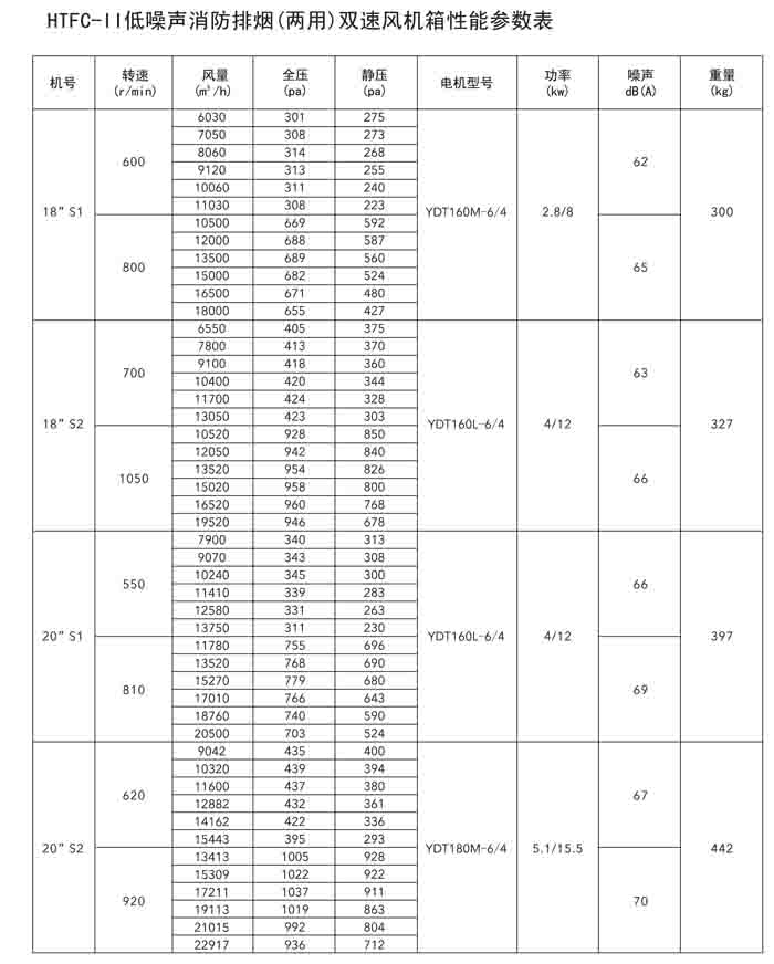 一、HTFC(DT)-I、II、V 系列低噪聲消防排煙(兩用)風機箱