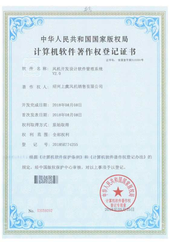 通道風(fēng)機風(fēng)筒支撐裝置專利證書 |